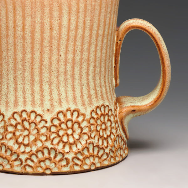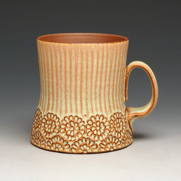 cone 5 red stoneware and glaze with hand-carved floral motif