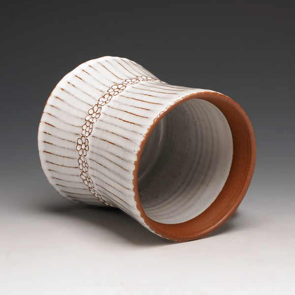 cone 5 red stoneware and glaze with hand-carved floral motif