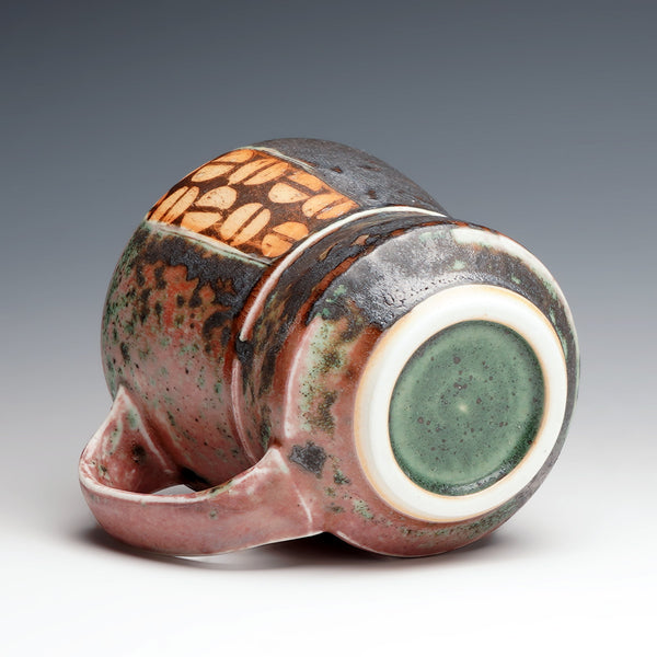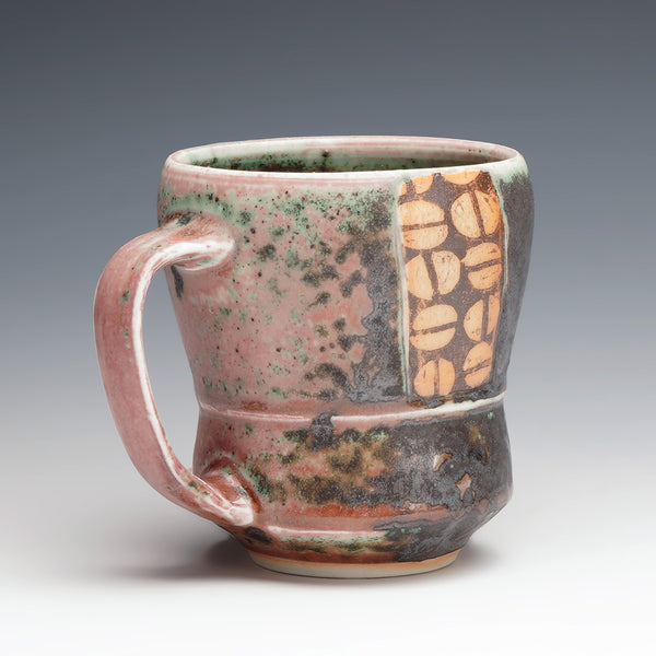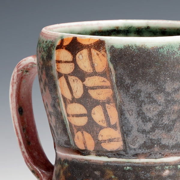 reduction fired stoneware, block print transfer