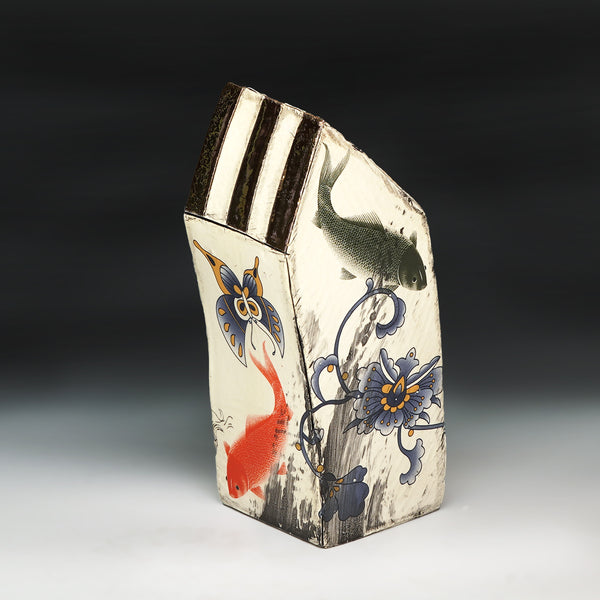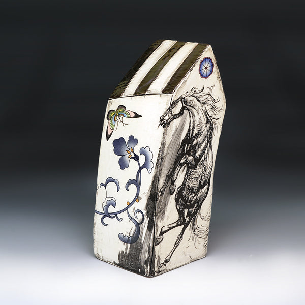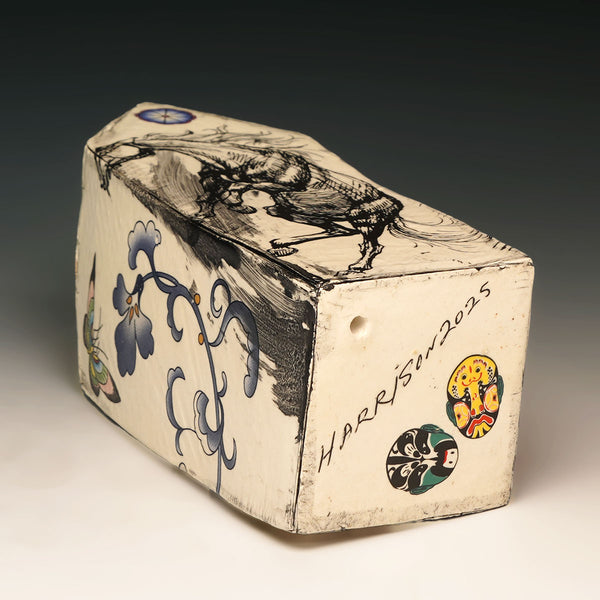 extruded and altered whiteware, china paint, decals
